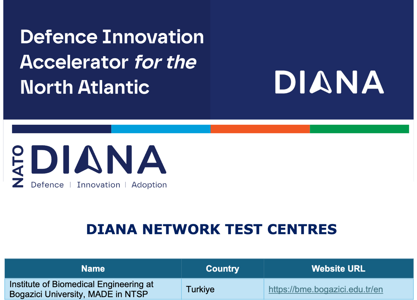 MADE in NTSP, NATO’nun Kuzey Atlantik Savunma İnovasyon Hızlandırıcısı (DIANA, Defence Innovation Accelerator for the North Atlantic) programı resmi Test Merkezleri arasına dahil oldu. DIANA programı, şirketlere kritik savunma ve güvenlik sorunlarını çözmek için teknoloji geliştirme konusunda kaynak, ağ ve rehberlik sağlamaktadır.