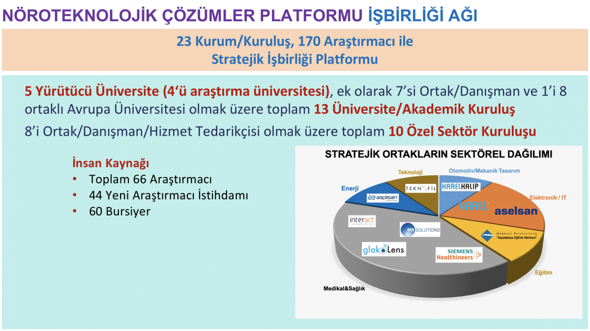 İnsan Fonksiyonunu Tehdit Eden Zorluklara Karşı Nöroteknolojik Çözümler Platformu (NTÇP) Nöroteknoloji odaklı bir yüksek teknoloji mükemmeliyet merkezidir. Nöroteknoloji, nöromorfik (beyinden esinlenen) teknolojiler bağlamında sensörler, enstrümantasyon, büyük veri, yapay zeka, makine öğrenmesi, algoritmalar ve kontekst bilinçli karar alma konuları üstünden araştırma geliştirme içerdiği için tüm mühendislik, sağlık bilimleri ve temel bilimler disiplinlerine ek olarak, eğitim bilimleri ve yeşil/sürdürülebilir endüstri, ekonomi ve finans konularını da kapsayan son derece güncel, geleceği belirleme kapasitesi çok yüksek bir alandır. NTÇP’nin amacı, nörolojik hastalıklar, eklem ampütasyonu, serebral palsi, inme, Parkinson hastalığı, multipl skleroz, Alzheimer hastalığı, yaşlanma, eğitimsel-kognitif sorunlar gibi beyin, ekstremite, birey ve toplumu yaygın olarak etkileyen zorluklara karşı teknoloji seviyesi yüksek çözümler sağlamak ve endüstriyel süreçlere uygun, katma değeri, ekonomik ve toplumsal etkisi yüksek olan çıktılar geliştirmektir.