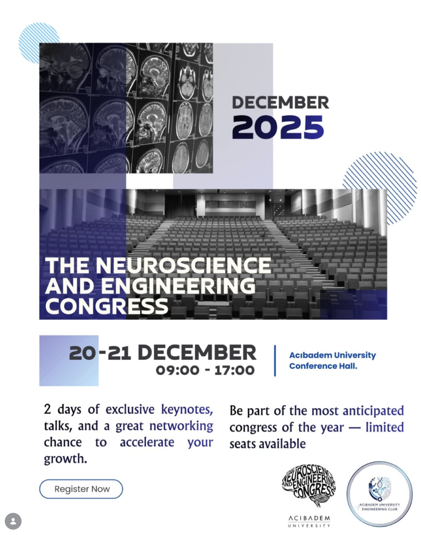 Acıbadem Üniversitesi Mühendislik Kulübü tarafından düzenlenen, nörobilim ve mühendislik alanlarındaki en son gelişmelerin ele alındığı uluslararası "Neurotech 2025: The Future of Neuroscience and Engineering" kongresi, 20-21 Aralık tarihlerinde gerçekleşti. Bilim insanlarını, mühendisleri ve sektör liderlerini bir araya getiren bu iki günlük prestijli etkinlikte, NTÇP araştırmacılarından Can Yücesoy ve Esin Öztürk Işık da konuşmacı olarak yer aldı.
