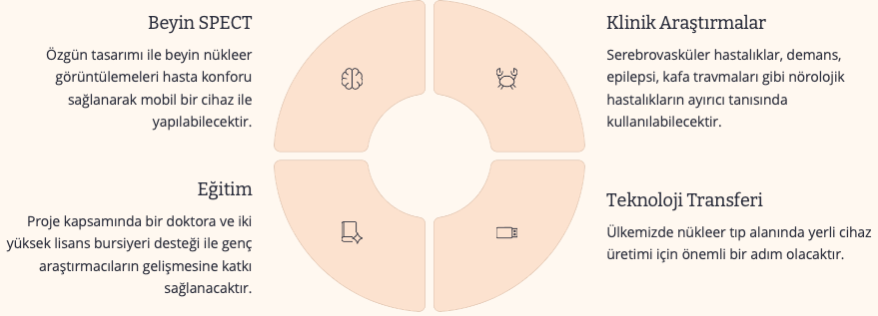 Bu proje kapsamında ileride yerli, modüler bir SFOV klinik SPECT cihazının üretilmesi yolunda önemli bir bilgi birikimi oluşacaktır.